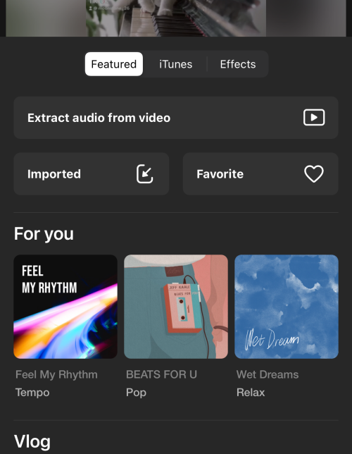 There are several paths to import music over to Inshot like extracting audio from a video in the camera roll, importing music from the device library, or picking a track from the featured music.
