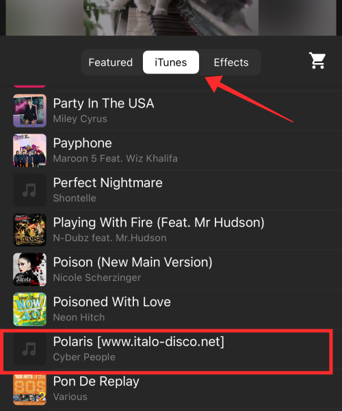 For demonstration, we shall go with iTunes music. To select a track from your iTunes, tap the iTunes tab. Select a track from the list. Make sure that you comply with the Creative Commons license while selecting a track and pay due credit to the copyright owner.