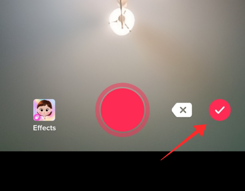 After filming all the clips, hit the red button with a check mark inside to go to the editor.