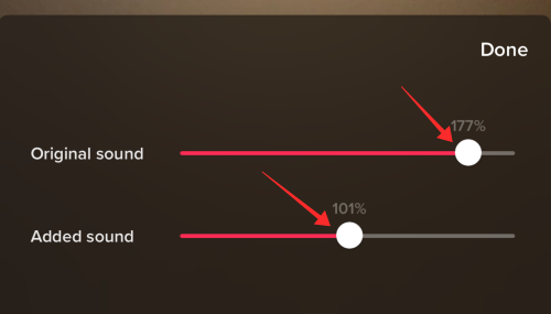 Use the slider for Original sound and Added sound to adjust the volume. Hit Done to return to the editor.