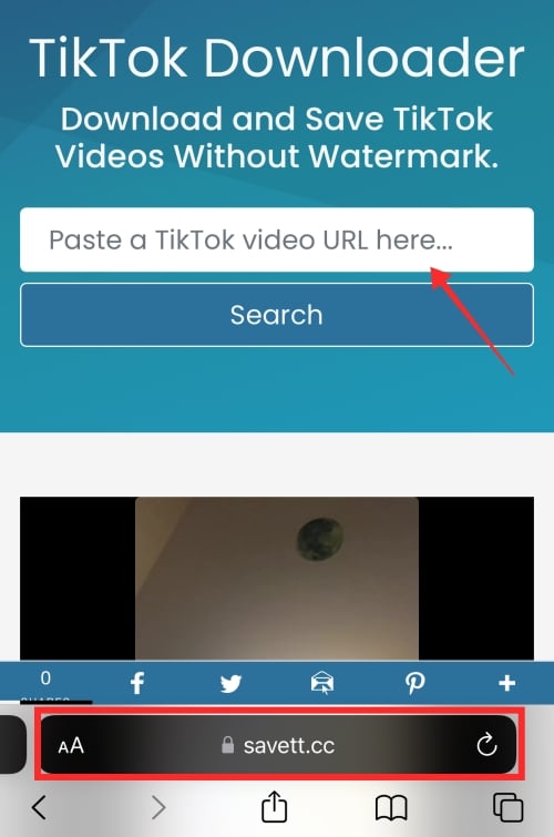 Go to a TikTok video downloader app or website. For demonstration, we shall go with savett.cc.