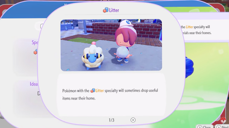 The system relies on Pokémon with the Litter ability, which occasionally drop materials.