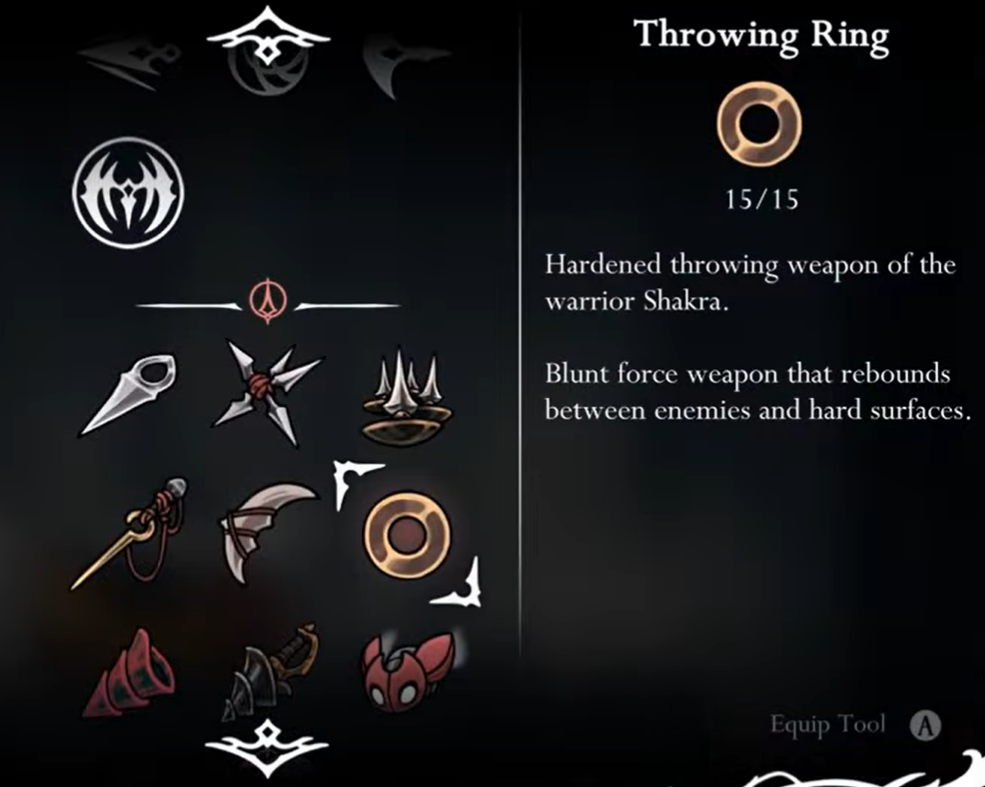 Once you locate Shakra in the hidden northeastern pathway, interact with her to complete the Trail’s End Wish. She’ll reward you with the Throwing Ring, a versatile tool that bounces off enemies and is particularly effective against multiple ranged targets. This tool adds a new layer to Hornet’s combat arsenal, allowing you to: