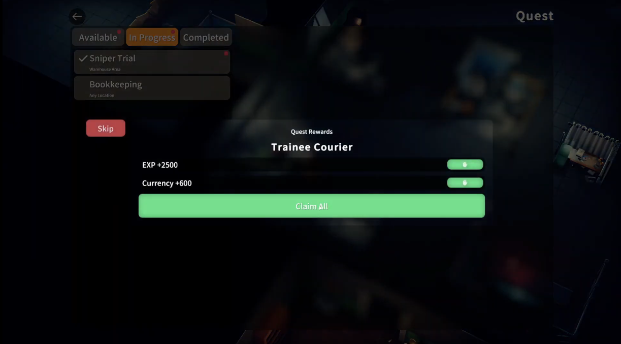 Complete the quest to earn XP and currency.