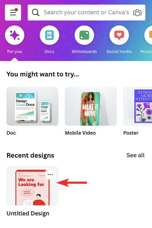 1. Launch the Canva app on your phone and open the design whose text you want to translate.