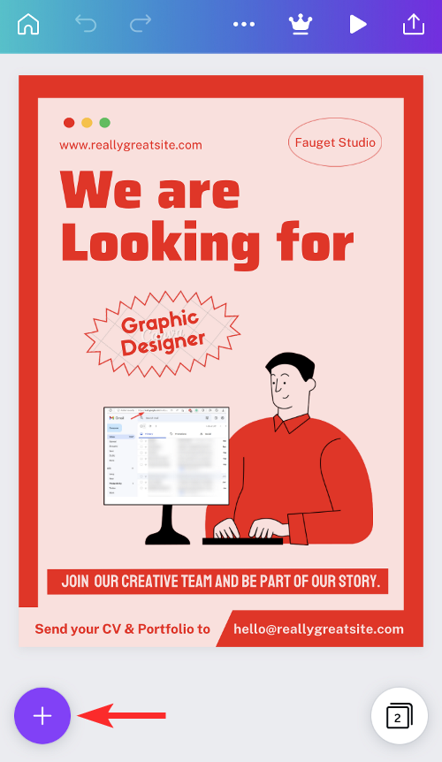 2. Once the Canva design loads, tap on the + button at the bottom-left corner of the app.