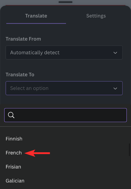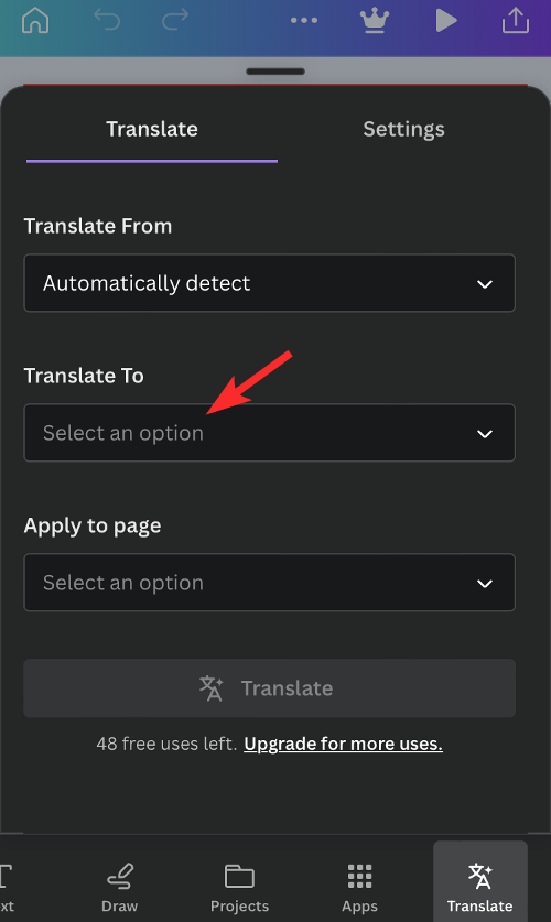 5. Next, tap on the “Translate To” dropdown box.