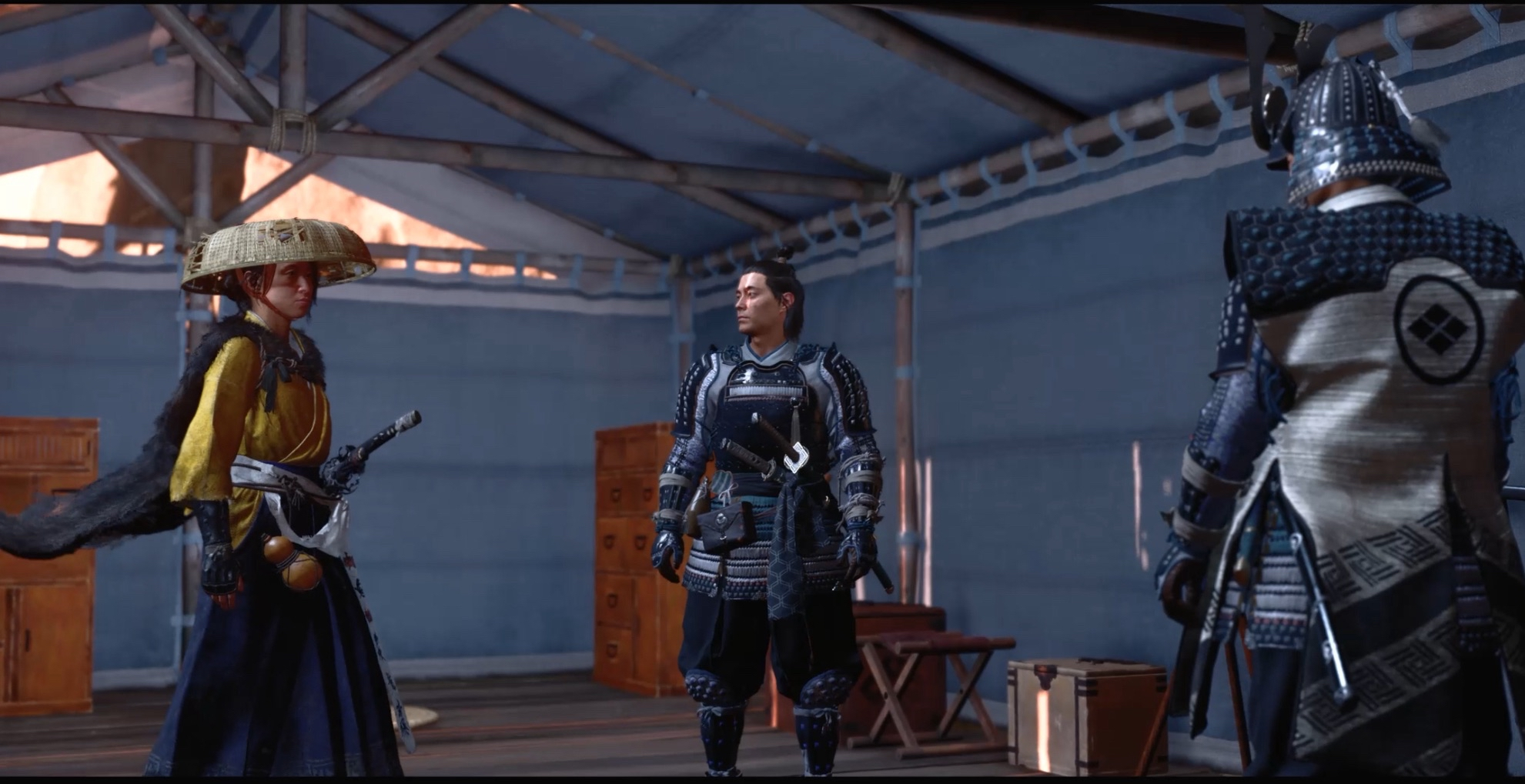 Travel to the northern Matsumae camp to meet Jubei, who is with the commander Wada. Enter the tent to trigger a cutscene.