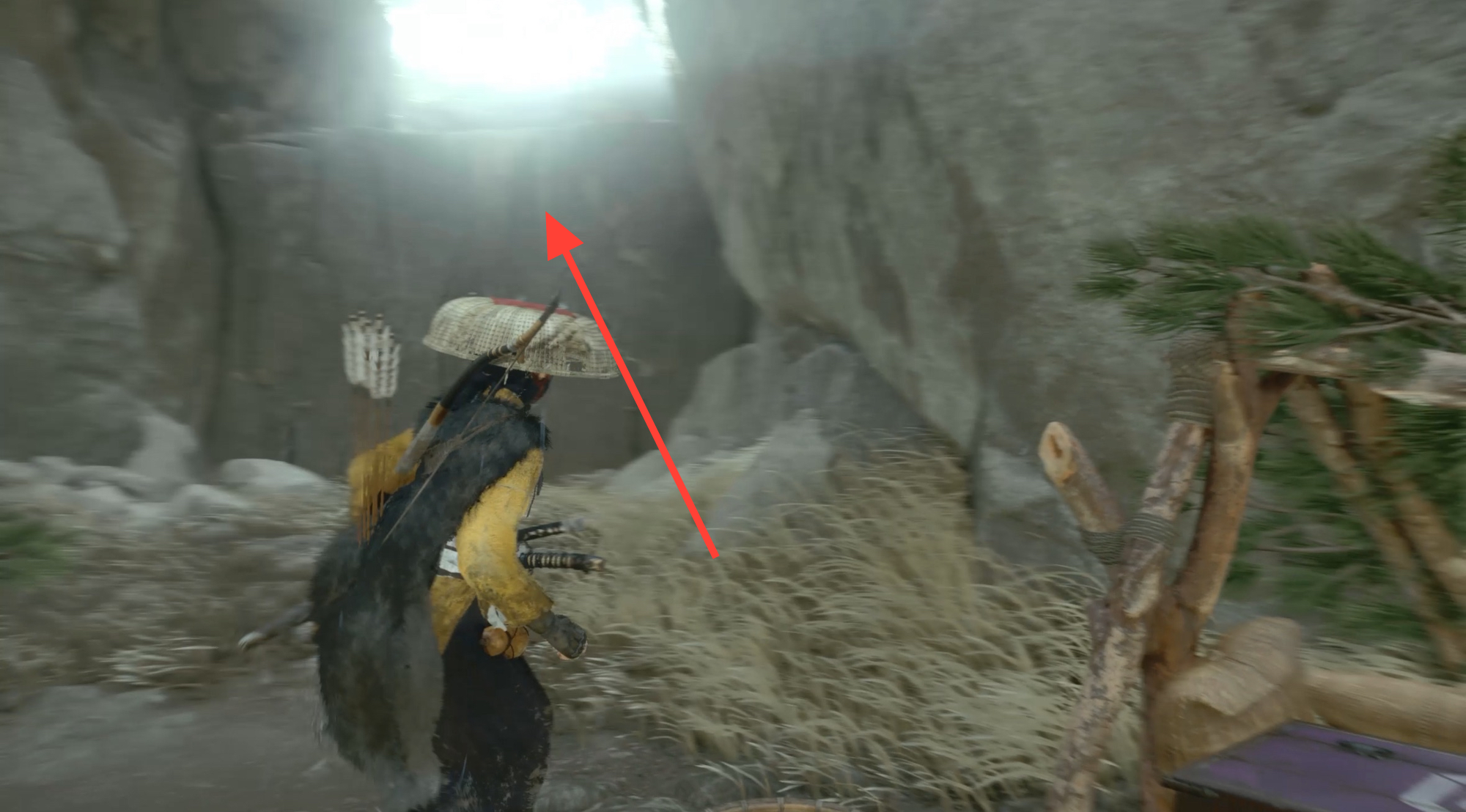 After exiting the cave, climb or grapple your way up to meet with Jubei.