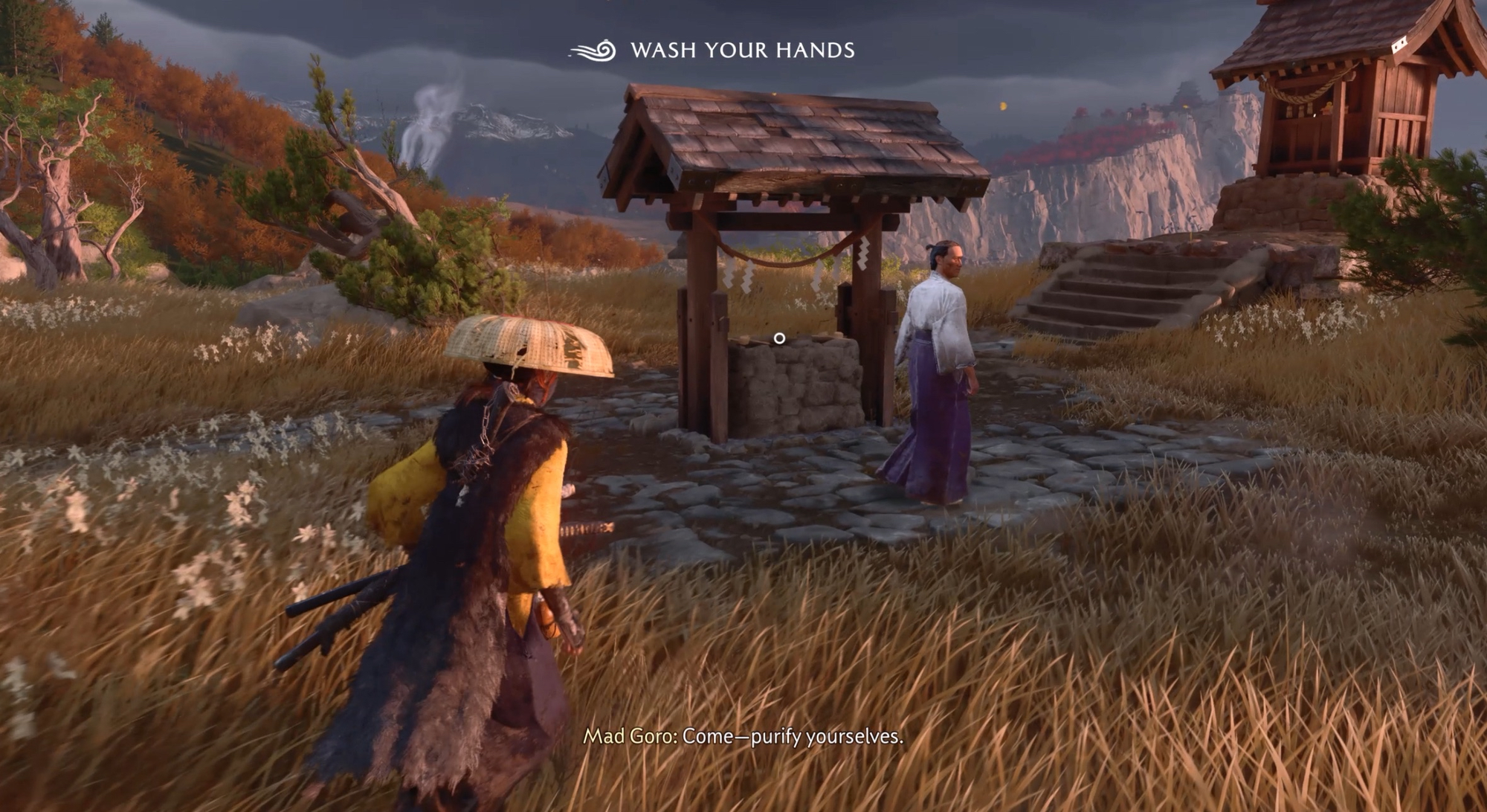 Mad Goro asks you to follow the shrine rules by washing your hands and mouth and paying respect to the shrine. This will give you the Charm of Hachiman.