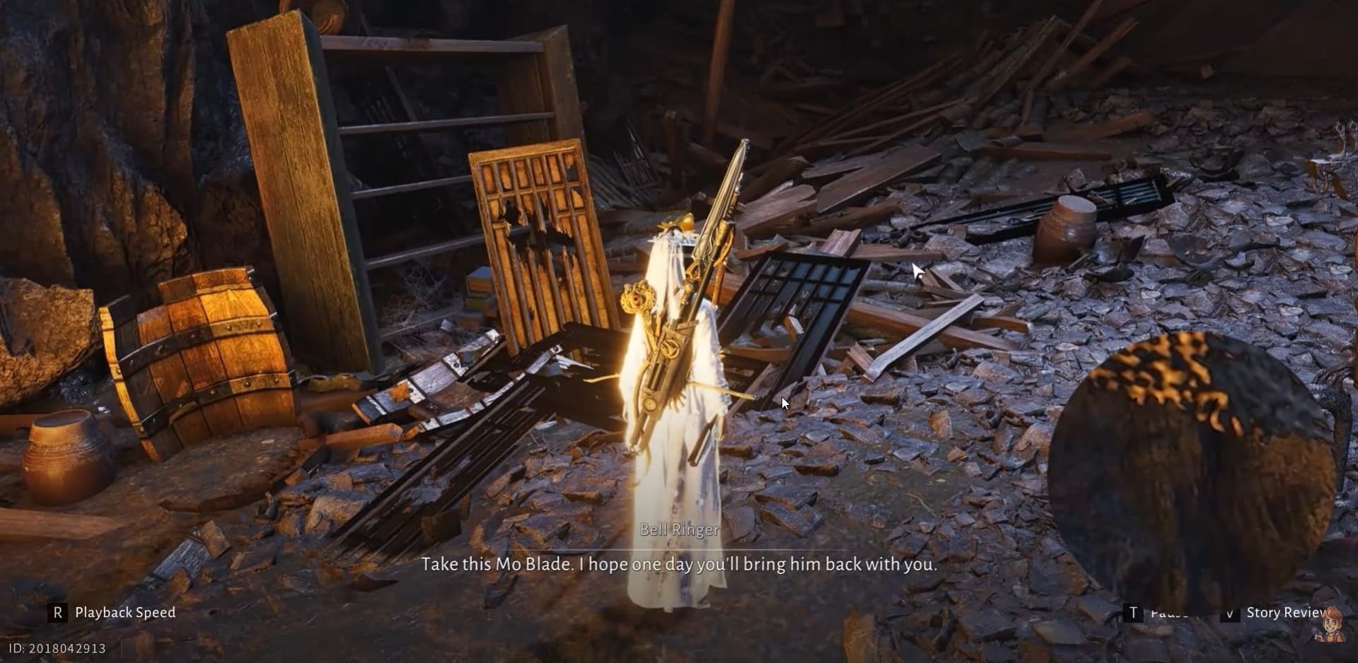 Interact with the Mo Blade there. A short conversation rewards you with Unbound Cavern Antique 1 - Cloudcrane Blade.
