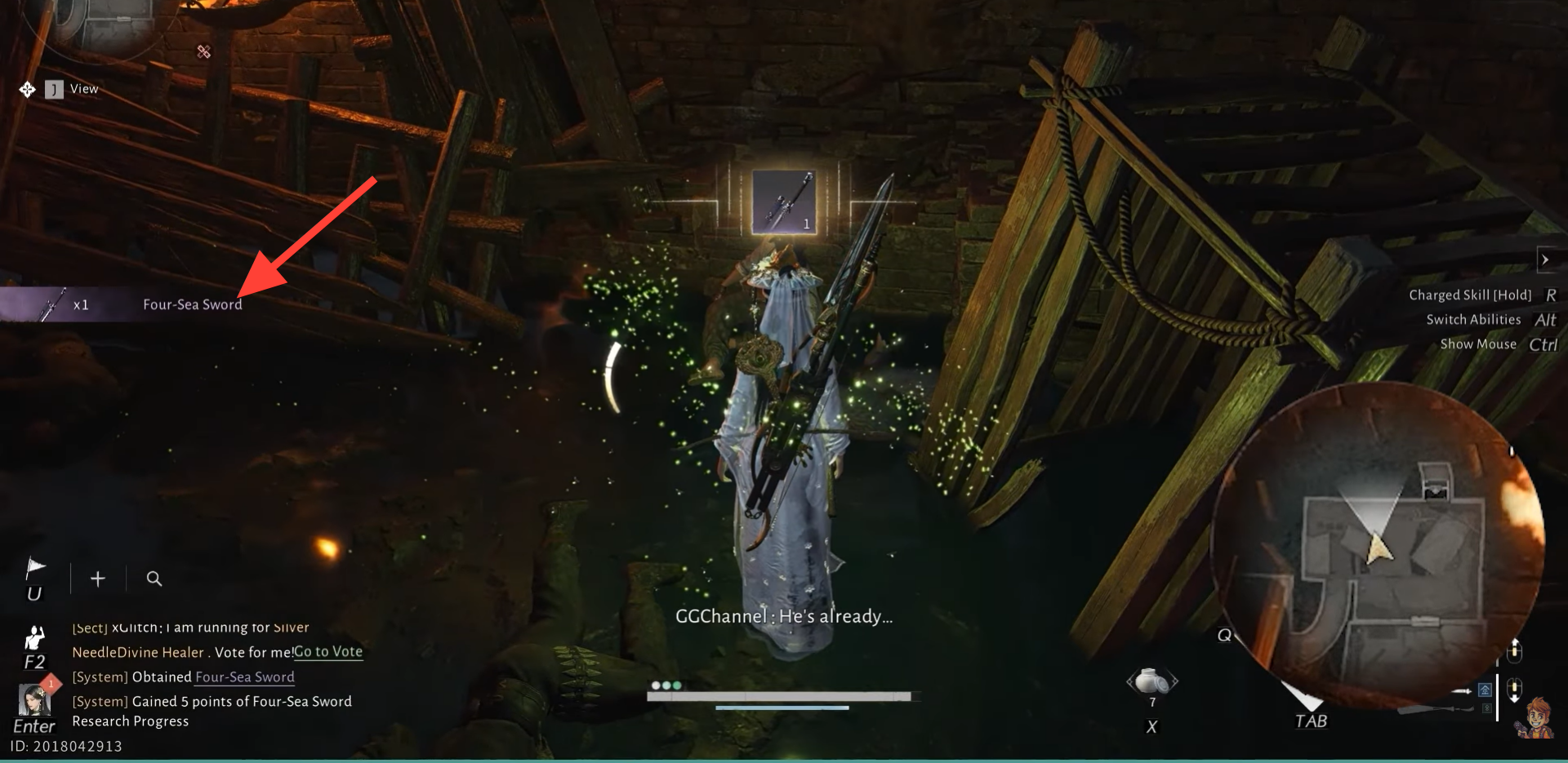 Interact with the Old Sword to get the Four-Sea Sword Antique of Unbound Cavern.