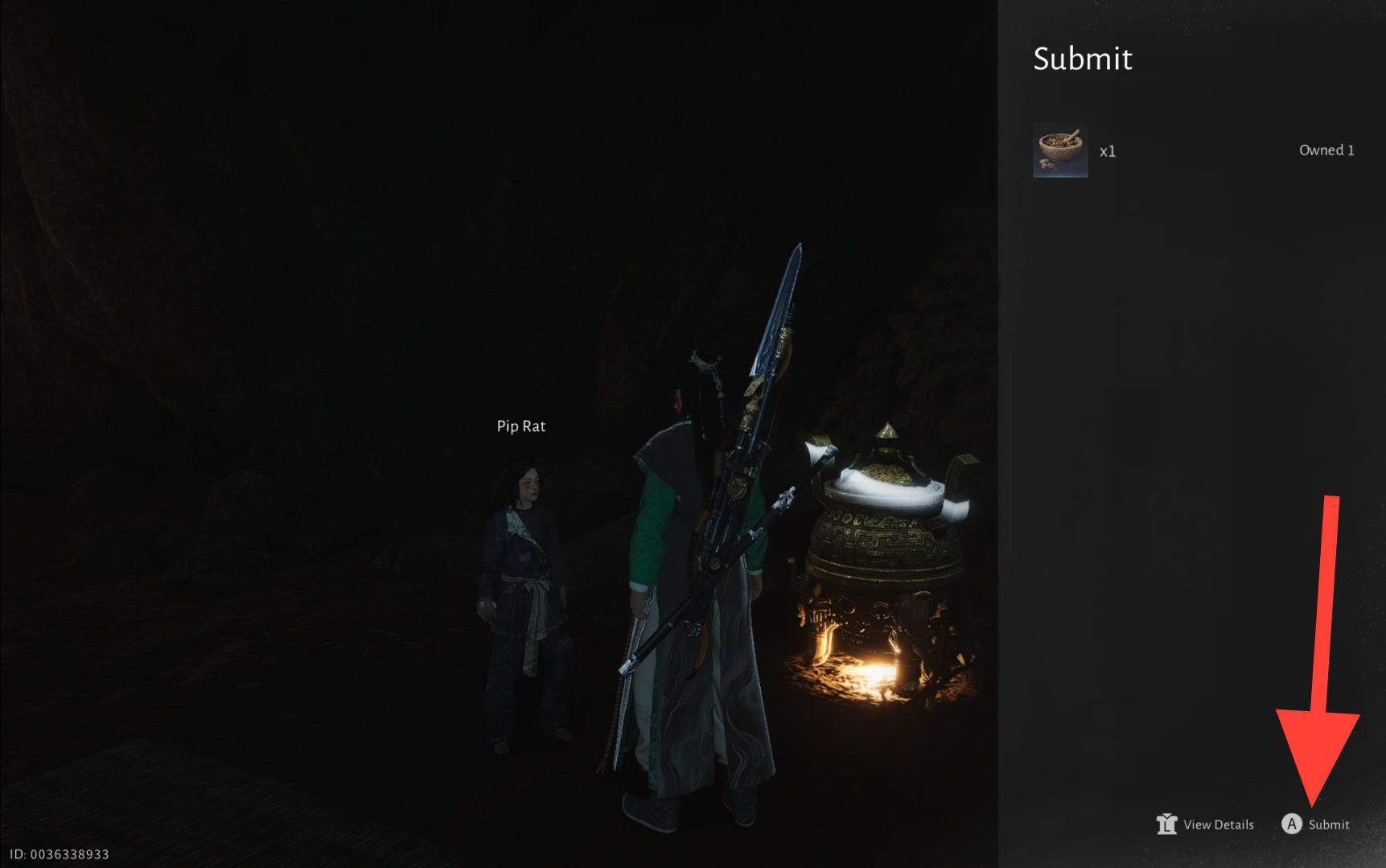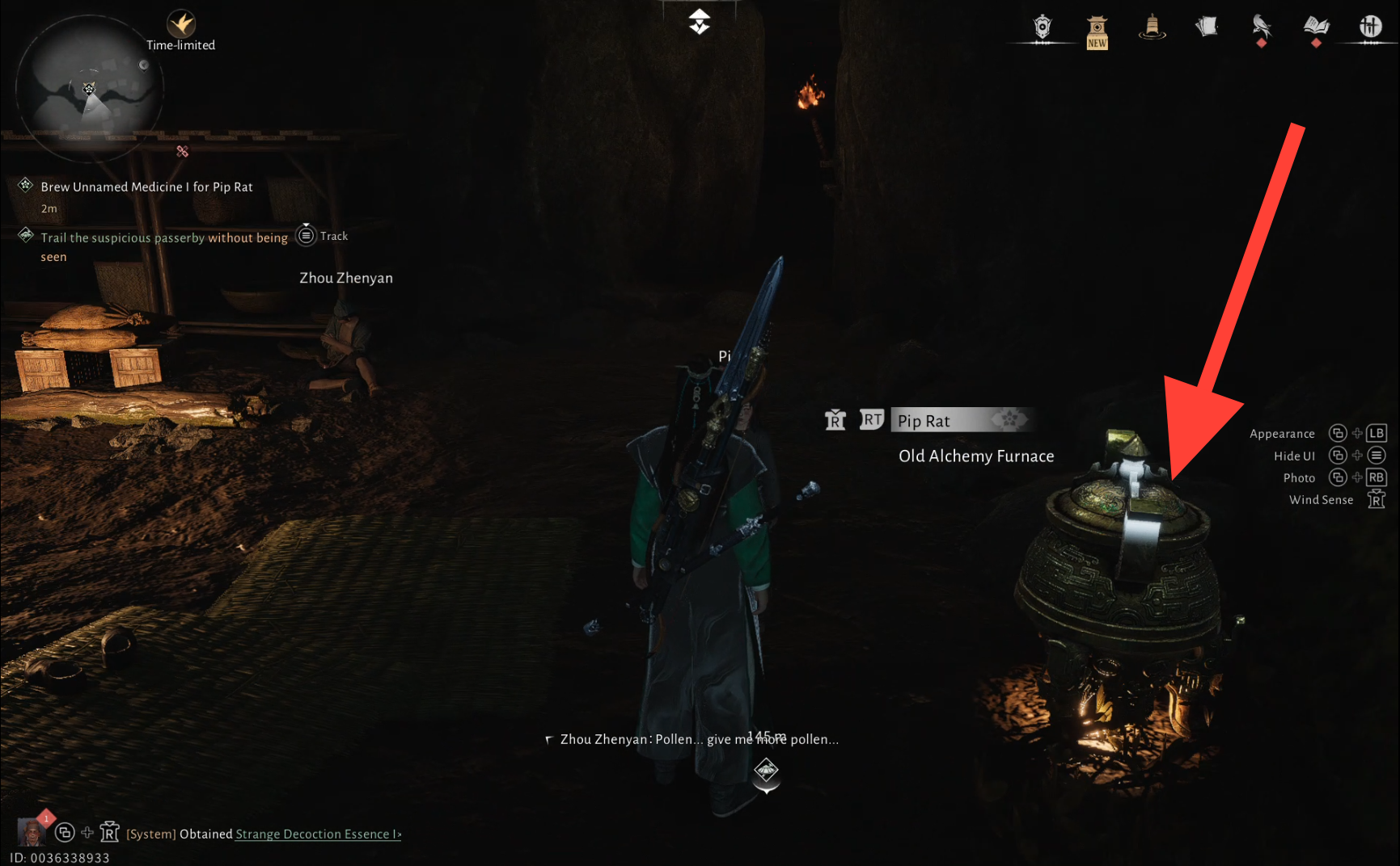 Head back to the Rat Den and use the Old Alchemy Furnace to craft the Strange Decoction II and submit it to Pip Rat.