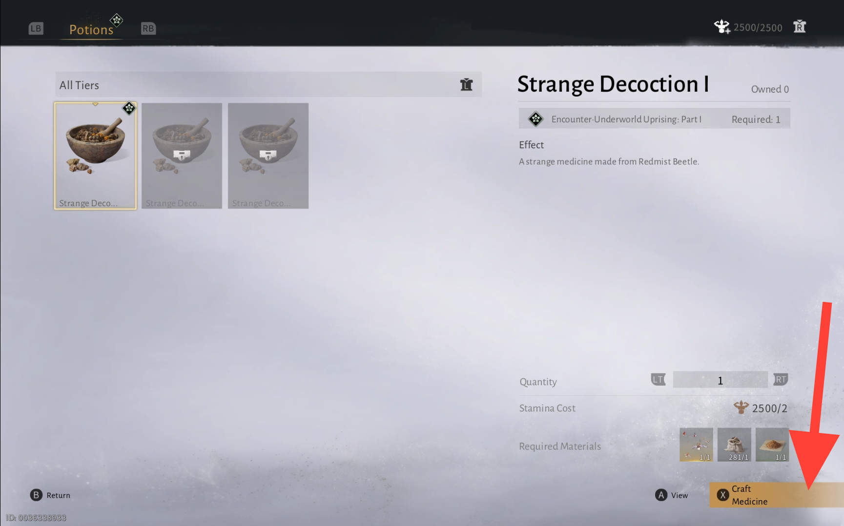 Interact with the Old Alchemy Furnace and craft the Strange Decoction I.