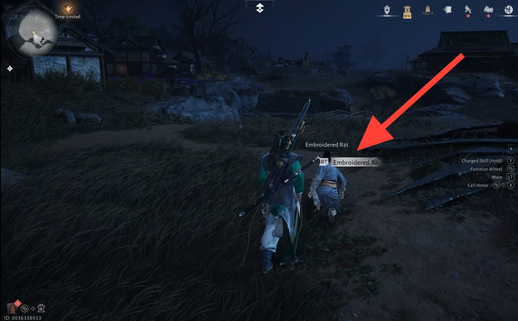 To trigger this Encounter, head to the marked location below near the Rat Den and speak with Embroidered Rat.