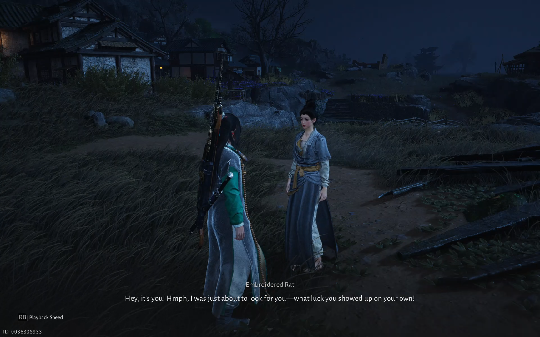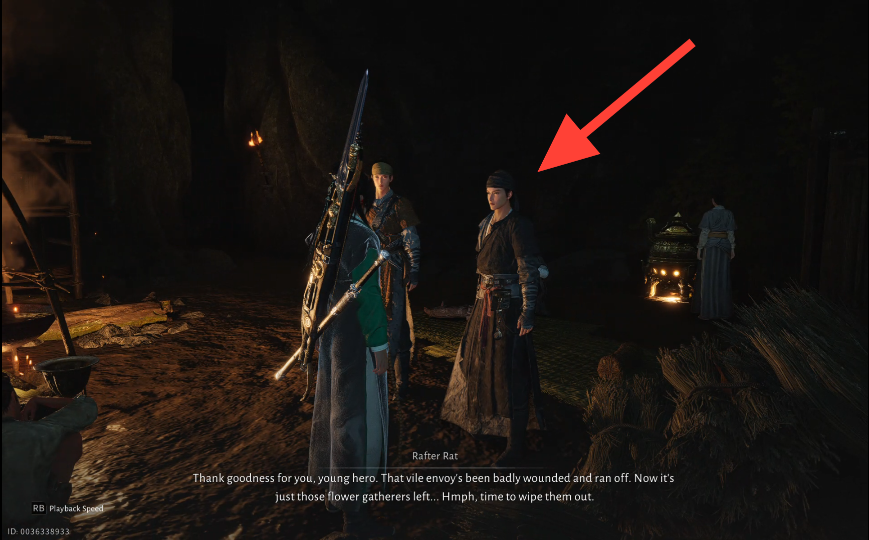 After reaching the marked location above, speak with Embroidered Rat outside the Rat Den to start this Encounter.