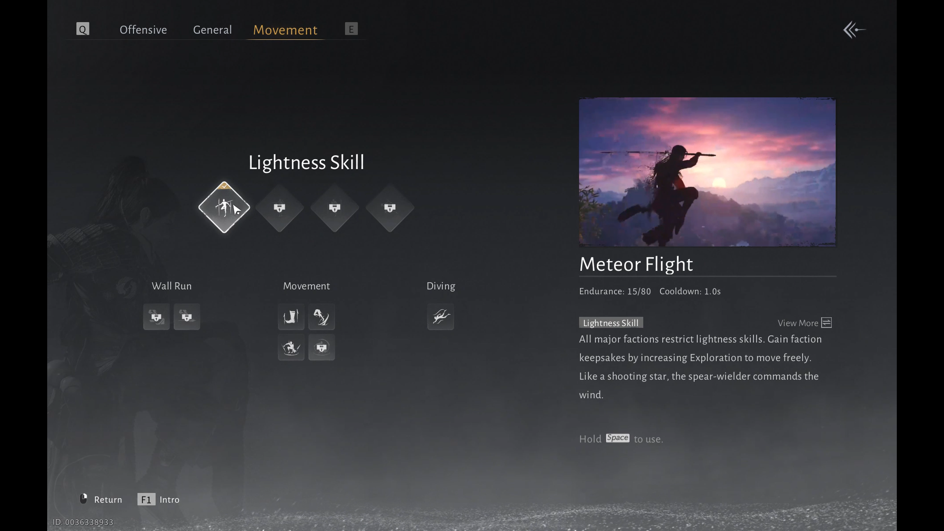 "All major factions restrict lightness skills. Gain faction keepsakes by increasing Exploration to move freely. Like a shooting star, the spear-wielder commands the wind."
