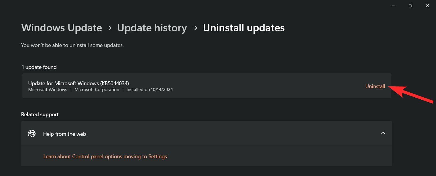 Step 4: Click and select the update you wish to uninstall and click on ‘Uninstall’.