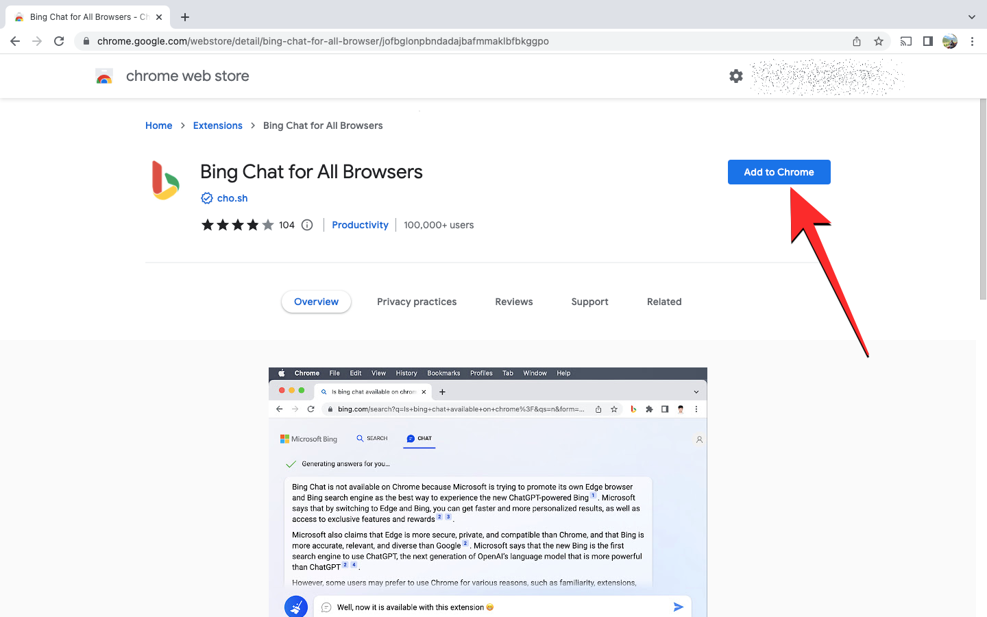 - Bing Chat for All Browsers extension is added to your Chrome browser.