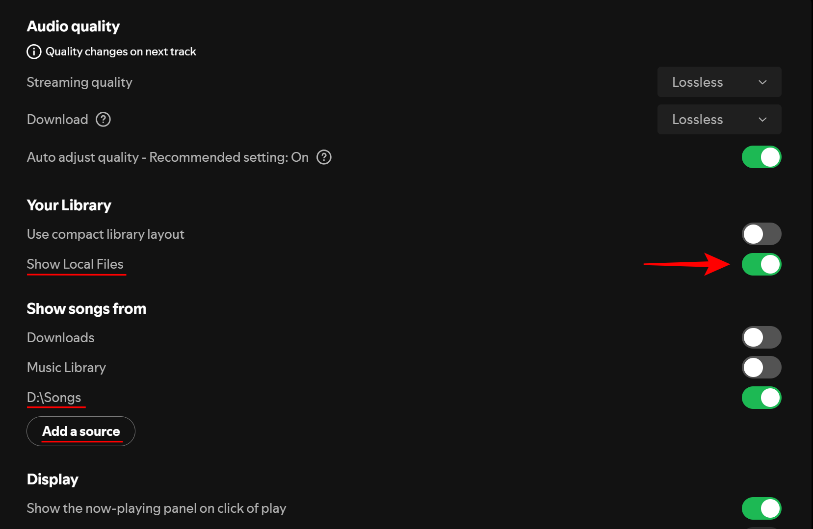 Firstly, on Spotify’s desktop app, go to Settings and enable Show Local Files.