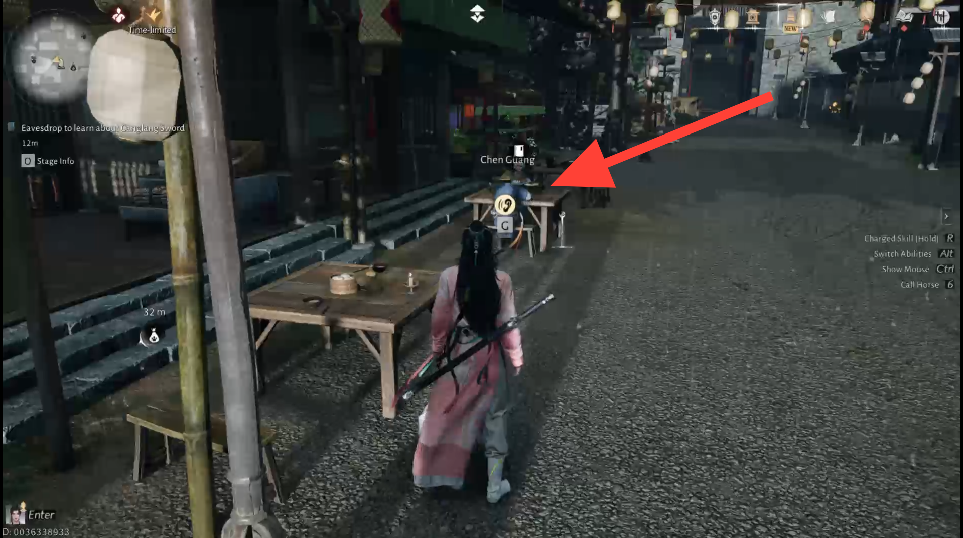 To begin this quest, go to the marked spot in Kaifeng City near the Goldwater Street boundary stone. The quest will trigger when you approach the two men sitting on a bench and talking.