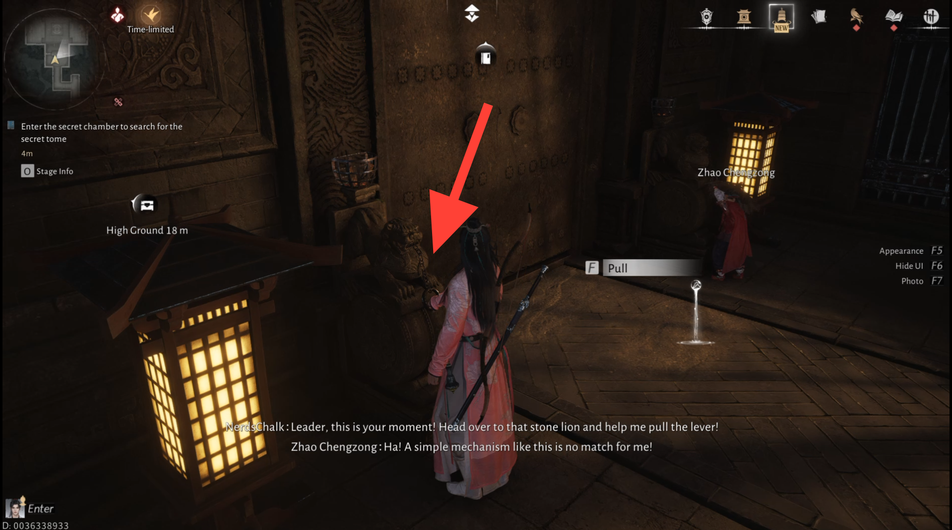 The secret door will close if you stop pulling the lever, so ask Zhao Chengzong for help to keep it open while you enter the secret door.