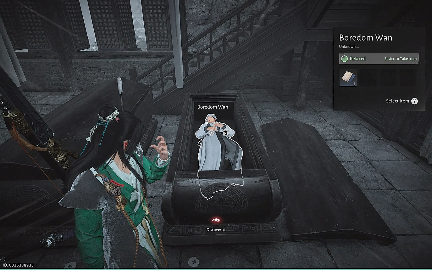 Enter the temple in the front, and you will find Boredom Wan in the open coffin. Use the Celestial Seize skill to obtain another Vanquishing Fist Manual.