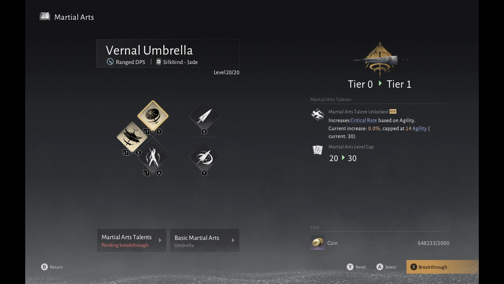 The Vernal Umbrella is a martial arts weapon focused on ranged DPS with a unique set of skills that enhance both offensive and defensive combat styles. Its skills allow the umbrella to function as a floating turret, firing projectiles that can stun or immobilize enemies, making it a strategic tool for crowd control and sustained damage.