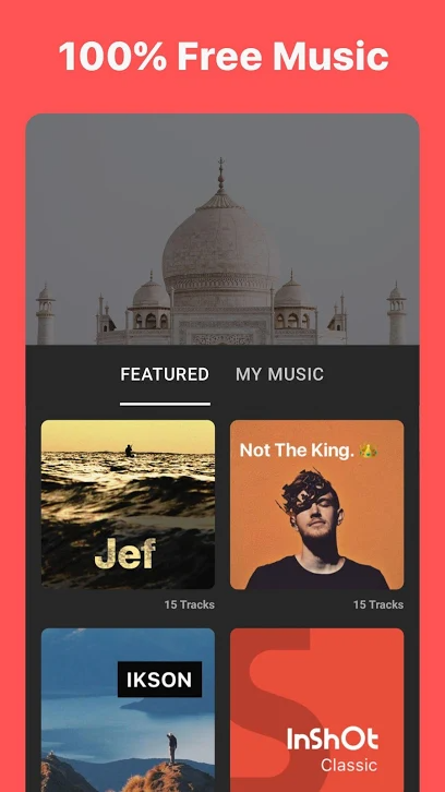 InShot has a simple and intuitive UI that is easy to grasp. The app has its basic functions down like trimming, splitting, merging, etc. It also lets you add music to your video by selecting from its library of tracks.
