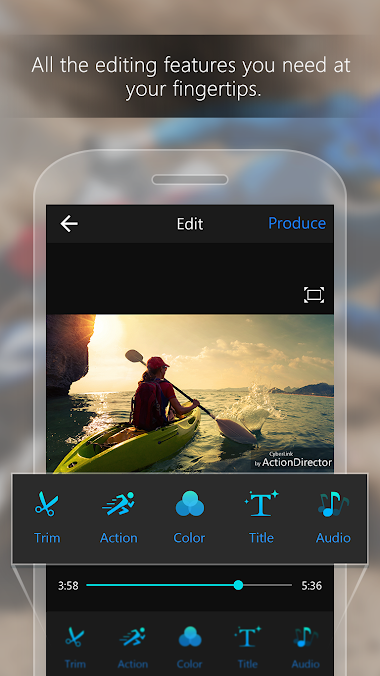 ActionDirector is simple to use video editor that offers some unique editing options. While at first it looks like it does not provide many effects and stickers as compared to the other apps in this list, ActionDirector actually lets you access its cloud library which is full to the brim with stickers.