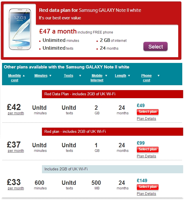 The Samsung Galaxy Note 2 is now available on UK carrier Vodafone. You’ll be able to get the 5.5-inch phablet for free on Vodafone’s “Red” plan for £47, which will include unlimited texts, calls, and 2GB of internet every month.
