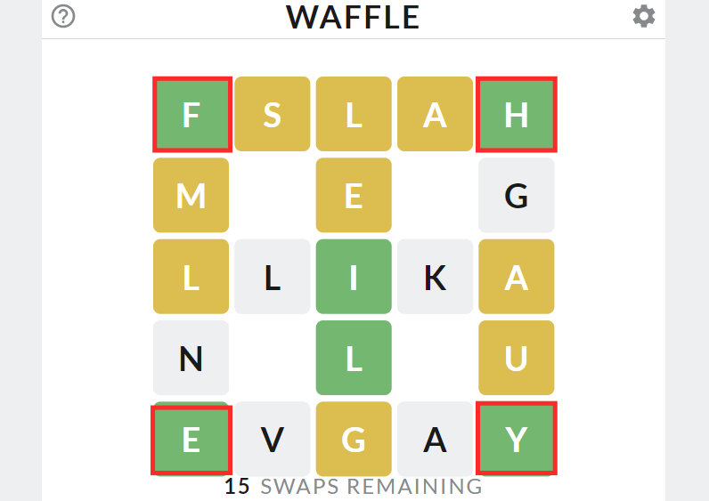 The catch is the upper limit set on the total number of available chances. With only 15 swaps at your disposal, the odds of encountering an abysmal fail are higher if you don’t make your moves wisely. However, it is fortunate that swapping across rows and columns is not restricted at all in the game. So, it all boils down to your ability to plan your moves. You also need an entirely new set of strategies than what works on Wordle to ace at Waffle.