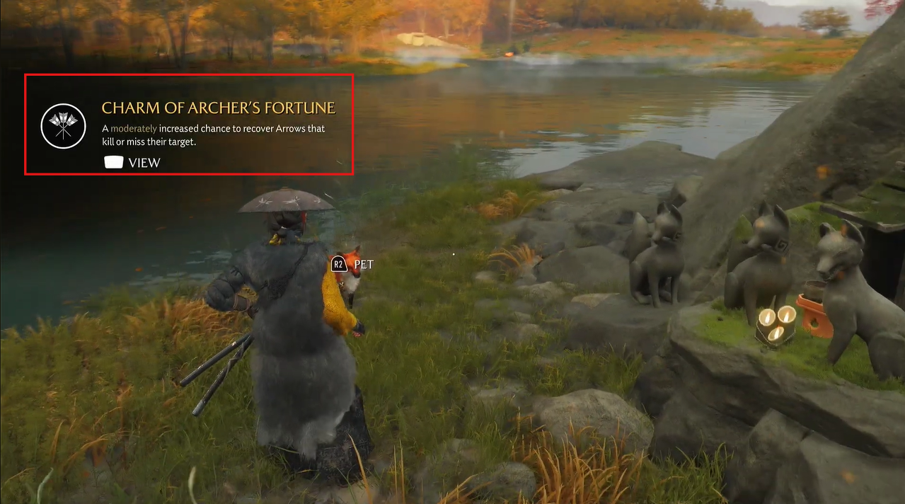 | Charm | Archer’s Fortune | Increases effectiveness of ranged attacks; minor ranged charm bonus. | Obtained after praying at the Warm Plains Inari Shrine. |