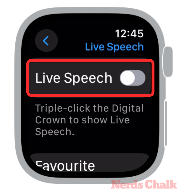 If Live Speech is somehow enabled on your Apple Watch but you don’t plan on using it, you can disable it by going to Settings > Accessibility > Live Speech and turning off the Live Speech toggle on your watch.