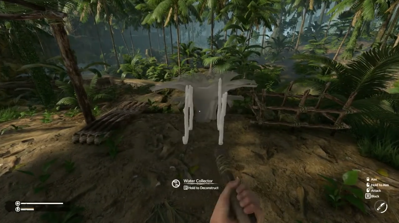 In Green Hell, the water collector is a small structure that hangs from a tree or support and passively gathers clean water over time. It doesn’t need to be refilled manually and will keep dripping water into a container placed directly underneath it, as long as that container is empty or has space.
