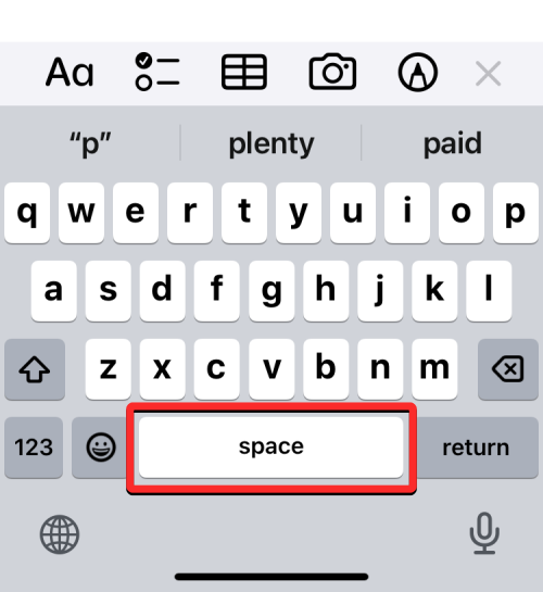 Depending on the text you previously entered, predictions inline might suggest the complete word or sentence you want to add as text. To enter the predicted text without typing it manually, tap on the Space key at the bottom.