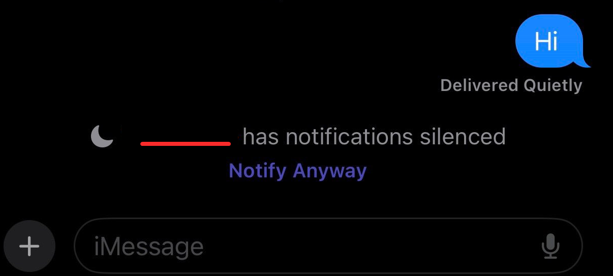 When an active Focus mode disables or delays notifications for a compatible app then the status for the same is shared with the app. This lets the app know that your notifications are silenced and it notifies your friends about the same when they try to get in touch with you. This of course happens once you’ve permitted the app to do the same. The option you see for ‘Notify Anyway’ will help you bypass an active Focus mode to deliver urgent notifications to your friends and family when they have a Focus mode active.