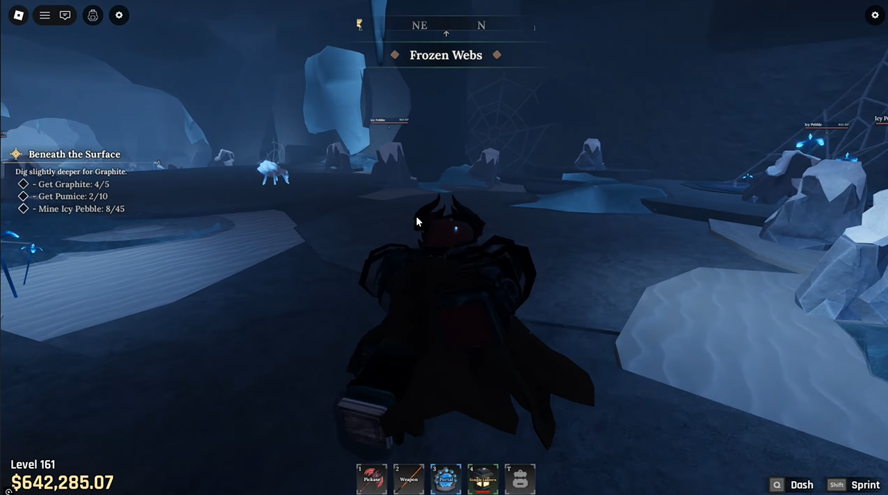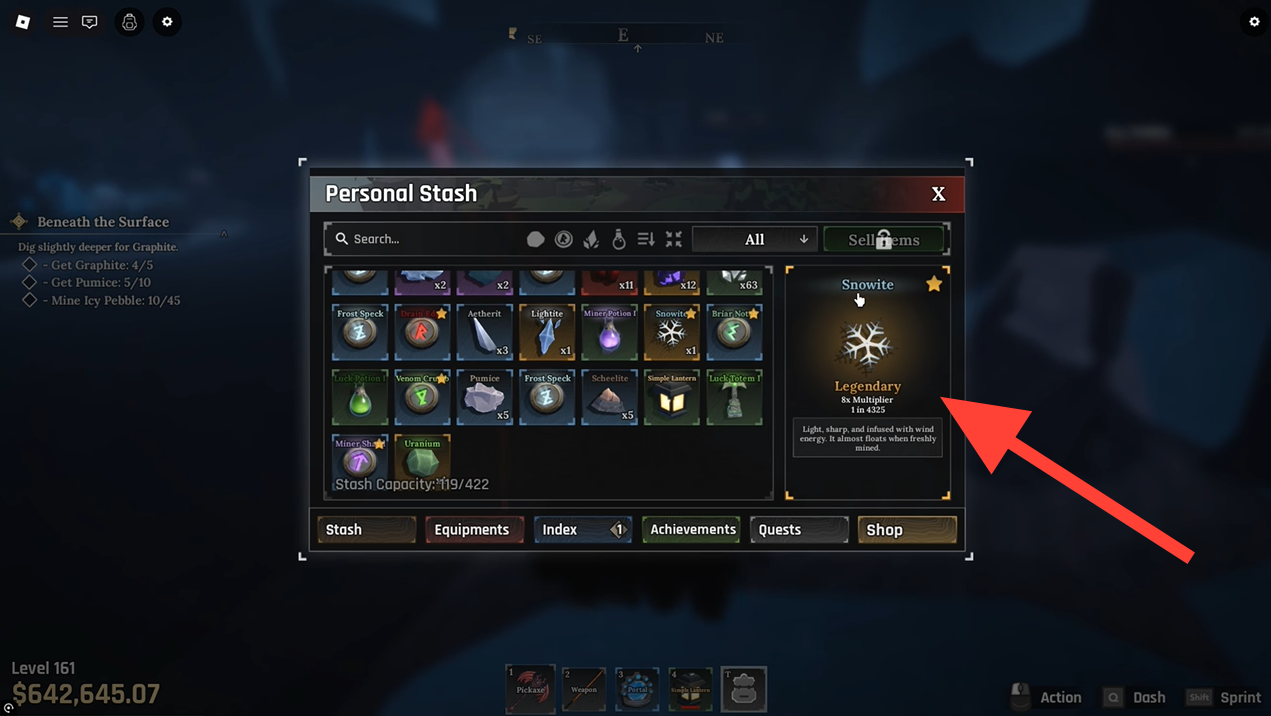 To obtain Snowite, head to the Frostspire Expanse region in The Forge where you’ll need to mine Icy Pebbles, Icy Rocks, Icy Boulders, and Small Ice Crystals. Snowite has a very low drop rate of 1 in 4,325, so expect a lot of farming and patience.