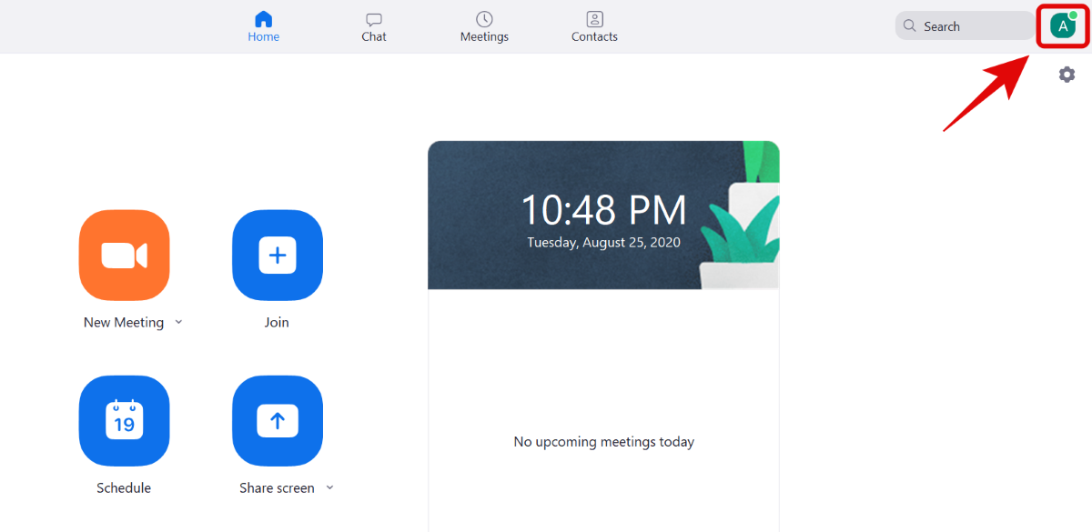 Open the Zoom desktop client and click on your profile picture in the top right corner.