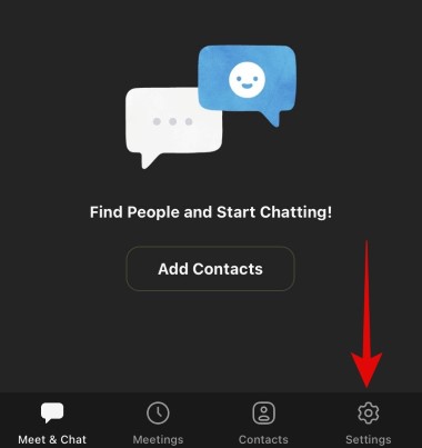 Open the Zoom app on your iOS device and tap on the ‘Settings’ icon in the bottom right corner of your screen.
