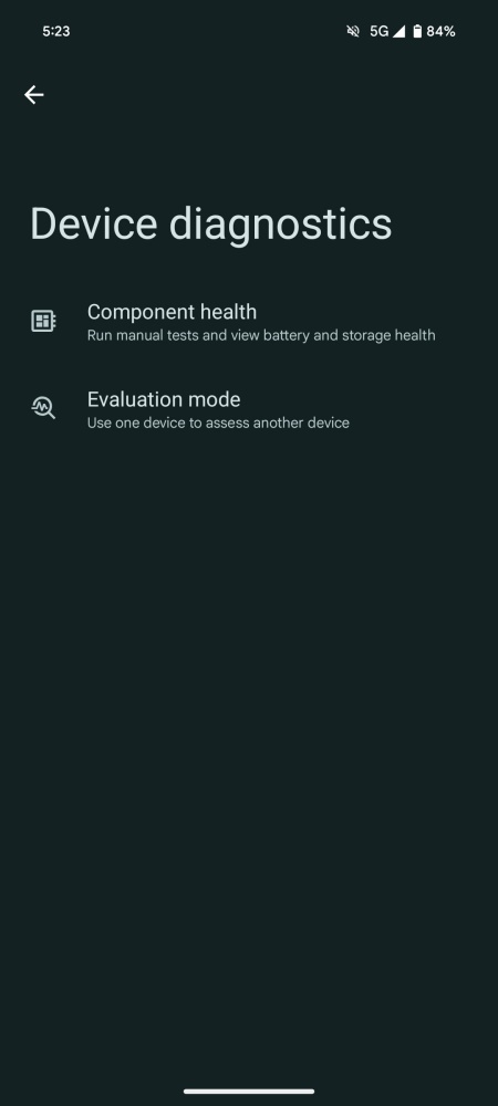 Device diagnostics is a new and more advanced way of checking if there’s anything wrong with the hardware components of your device. With it, you’ll be able to diagnose and test the display and touch input, and check the status of the battery and storage.