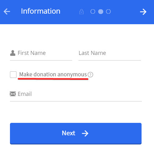 By pressing Next you will be taken to the page where you have to enter your personal information. You simply have to enter your name and email address. Here you can even choose to donate anonymously.