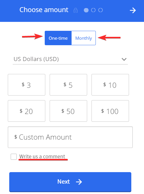 On the site, you will get the option of a one-time donation or a monthly donation.