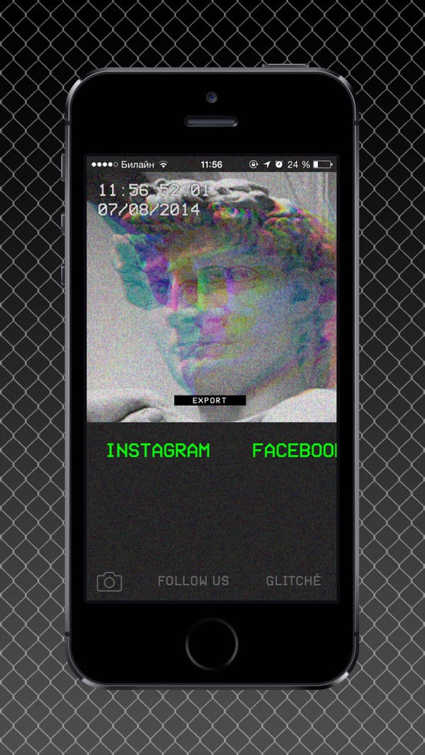 SLMMSK is the mini version of Glitché, so do not go here expecting a posse of filters. If you are looking to cover your facial identity, SLMMSK was made for you. The app has 10 filters, each of which affixes a timestamp to your picture. All of the filters in the app distort your face.