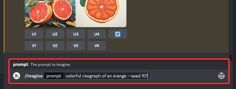 /imagine [description] --seed (value) – you can use any description you want to create your desired image and assign any value to the seed by replacing (value) with any whole number between 0–4294967295.