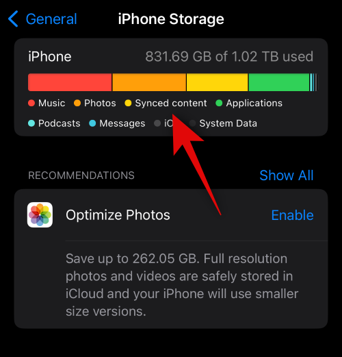 This content will occupy space on your iPhone and will be visible under the category Synced Content when viewing your storage. Depending on the content you decide to sync, this can take up significant or minimal space on your iPhone. The content you sync can include purchased or rented content depending on your devices and the restrictions placed by the provider.