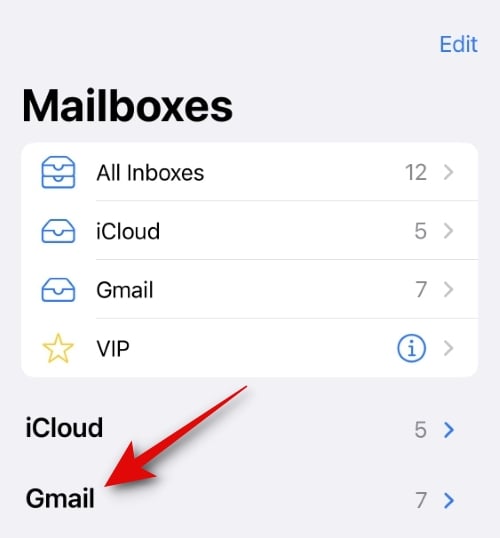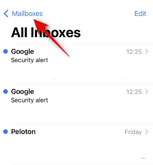 Open the Mail app on your iOS device and tap < Mailboxes in the top left corner.