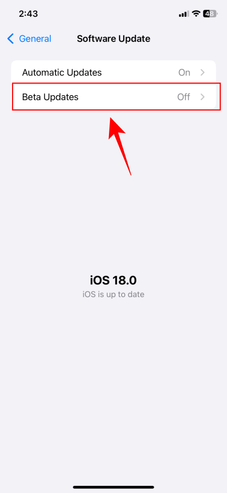 - If you have installed beta updates before, simply go to the Software Update page > Beta Updates. Here, select iOS 18 Public Beta.