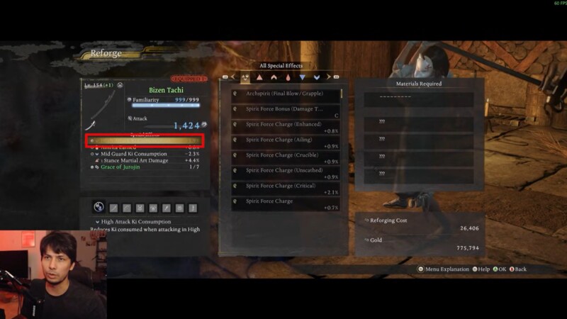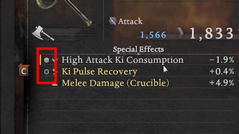 In Nioh 3, gear optimization revolves around affix management. Every weapon and armor piece rolls with AICS lines, and each of those lines determines bonuses like damage boosts, Ki recovery, elemental scaling, or utility modifiers. The small hexagon icons beside those lines determine whether you can alter them.
