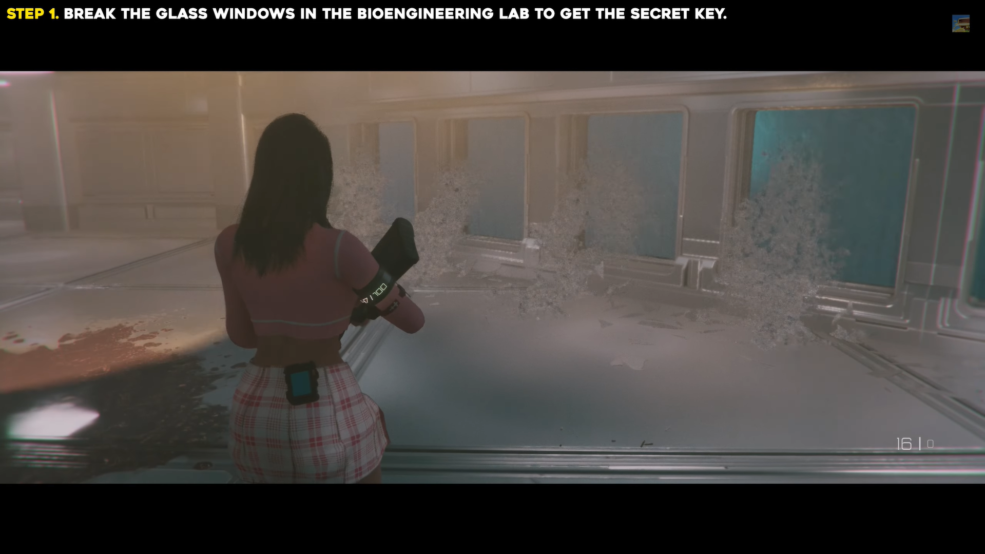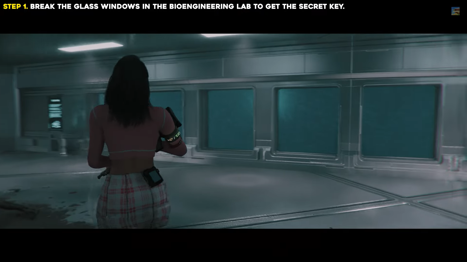 After completing the Testing Facility, continue the story until you reach the Bioengineering Lab. Shortly after the first corridor, you’ll enter a large room with tall glass windows and water flowing behind them.